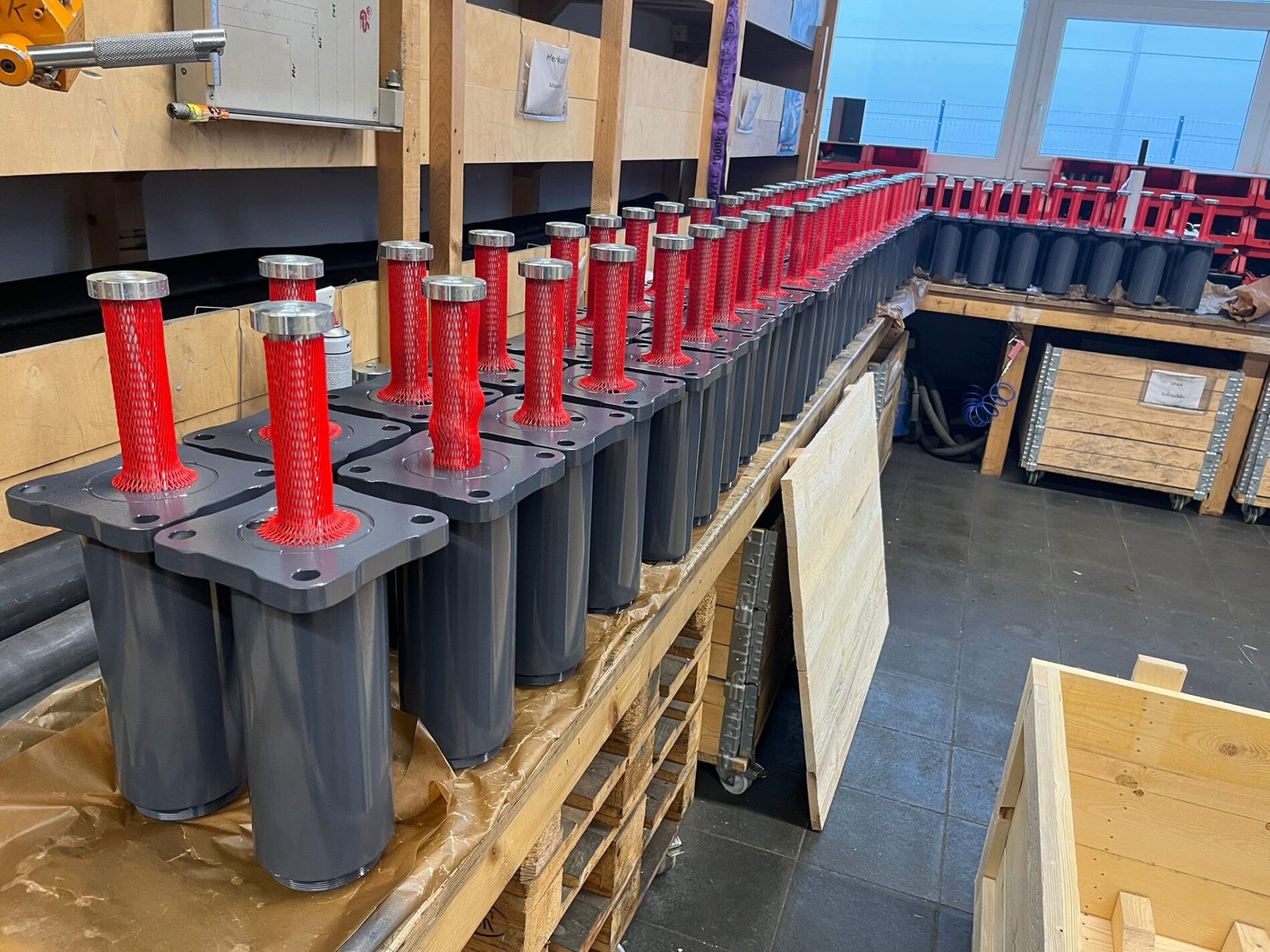 Hydraulic buffer for emergency stop applications in storage and retrieval systems / Automatic high-bay warehouses.