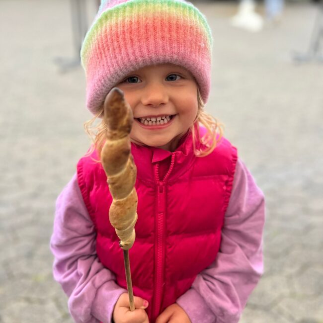 Popcorn was eagerly devoured and the communal stick bread around the campfire became a small highlight. Braving the rain, everyone gathered in a large circle, laughed, ate, and had a wonderful time together.By the way… the best bread on a stick recipe goes to Nicole Kerber! Recipe requests by email only! 😉