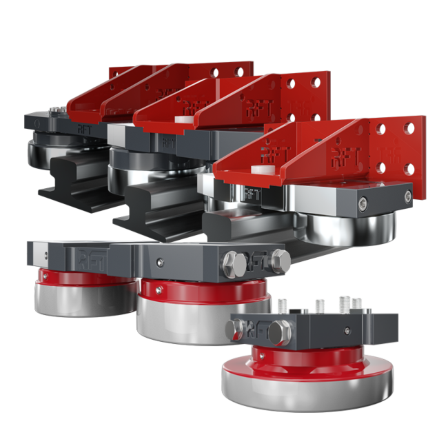 This is precisely where Römer Fördertechnik comes in: with decades of experience, technically advanced solutions and a deep understanding of industry-specific challenges, RFT offers a comprehensive range of products. From robust brake systems to heavy-duty rope pulleys and guide roller systems to powerful storm brakes / Rail clamps – all components are engineered for maximum reliability, safety, and durability.