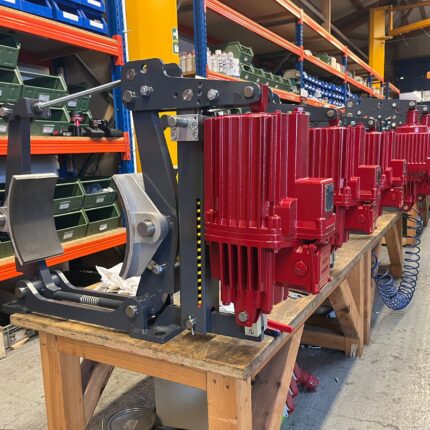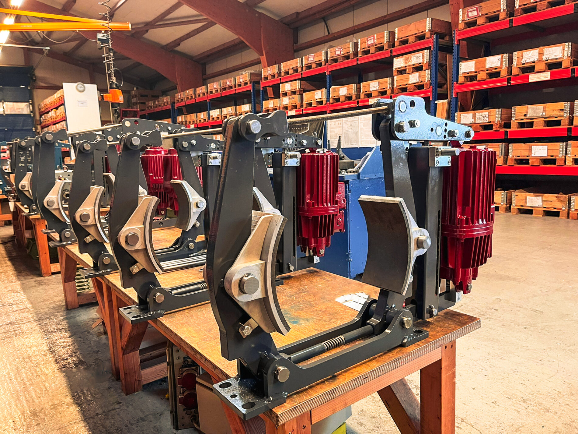 - Endschaltersysteme (mechanisch oder induktiv): „Bremse auf / zu / nachstellen“